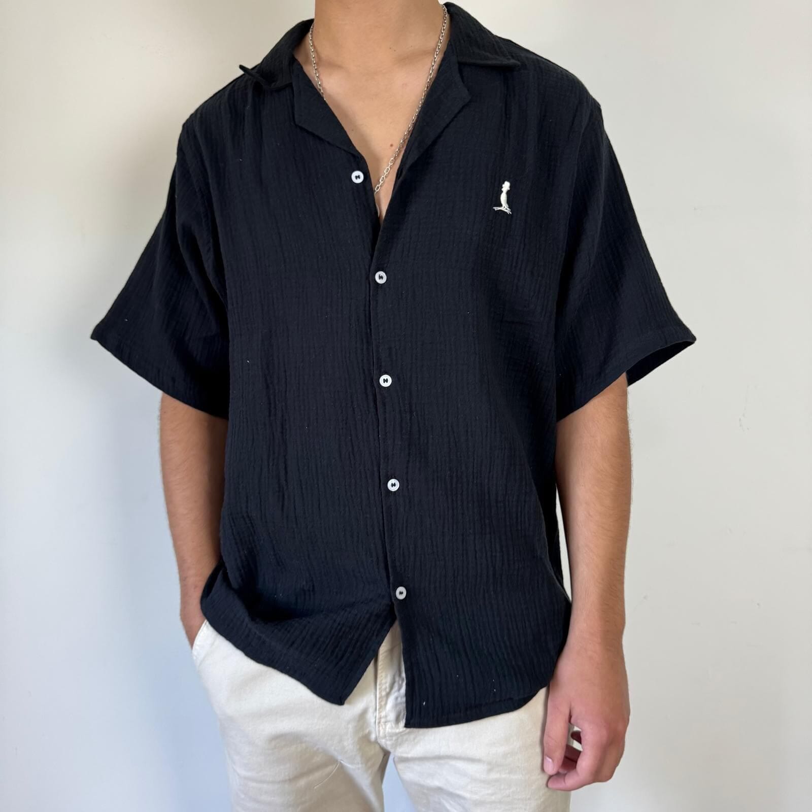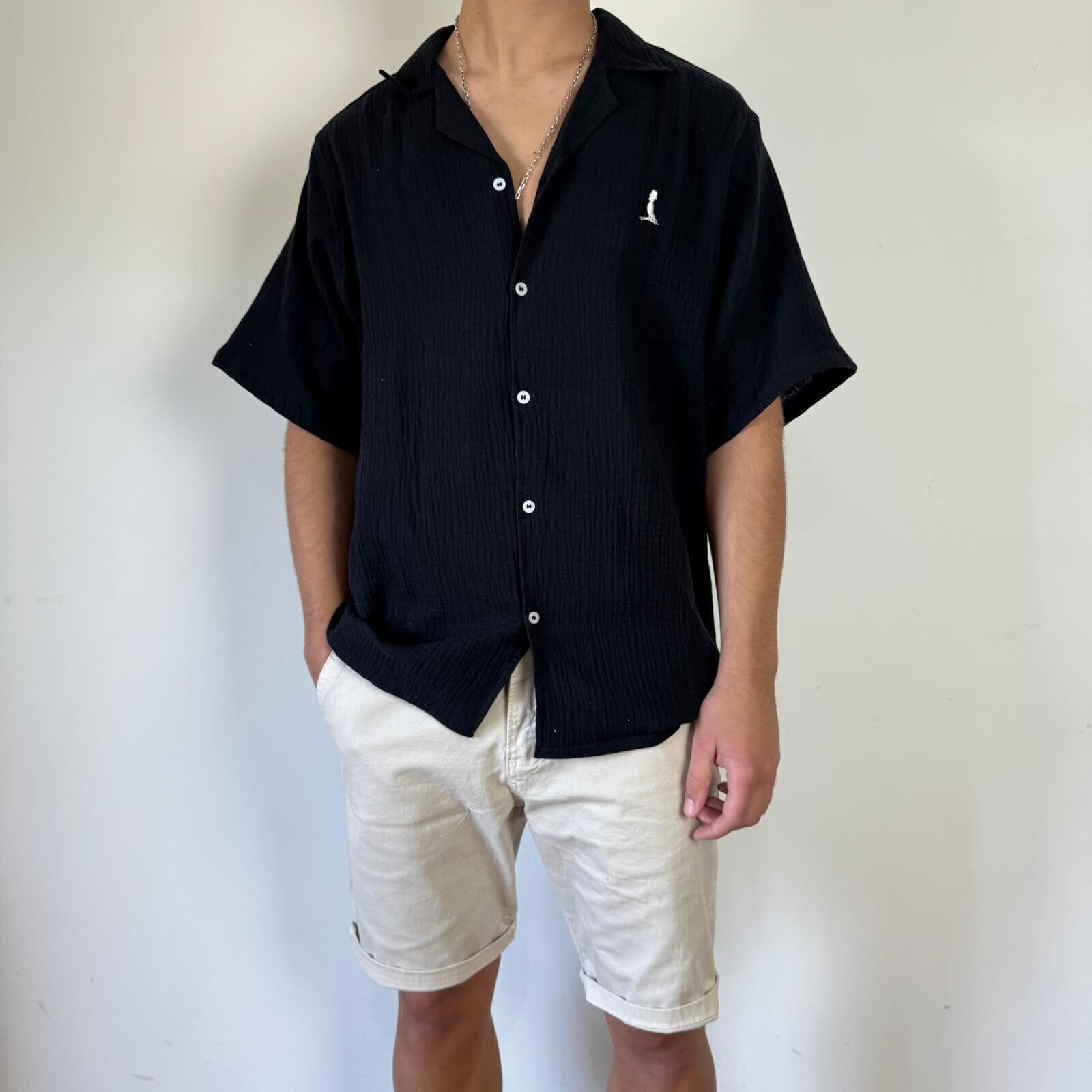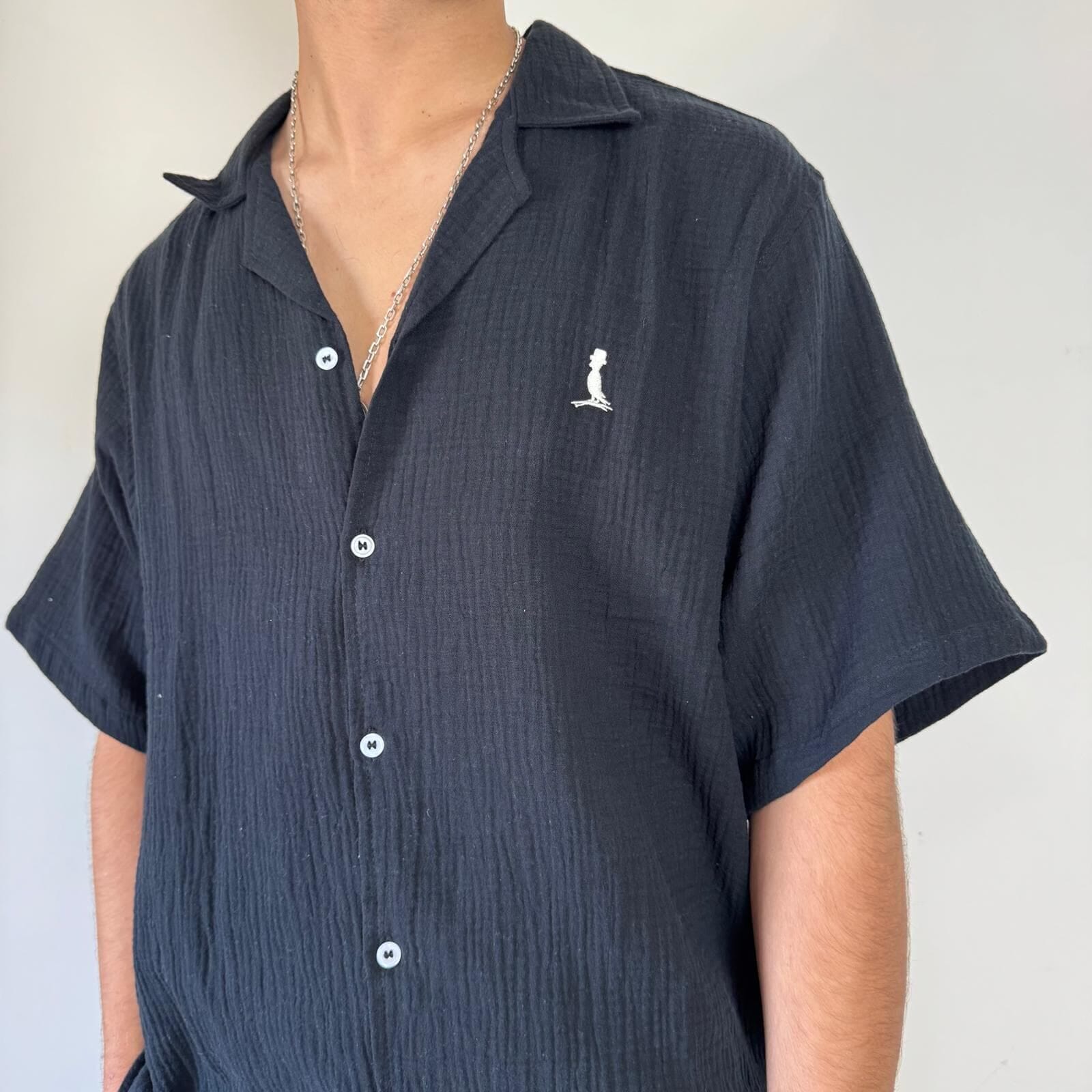 Camisa de muselina manga corta, corte oversize